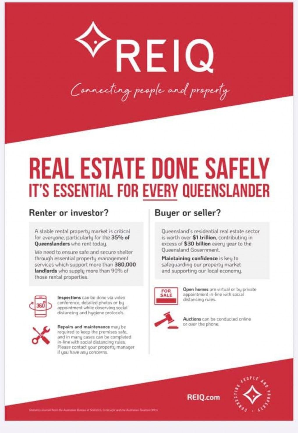 The REIQ's fact sheet outlines why real estate is essential for every Queenslander. It also lets the community know how real estate activities are being delivered safely during this time.